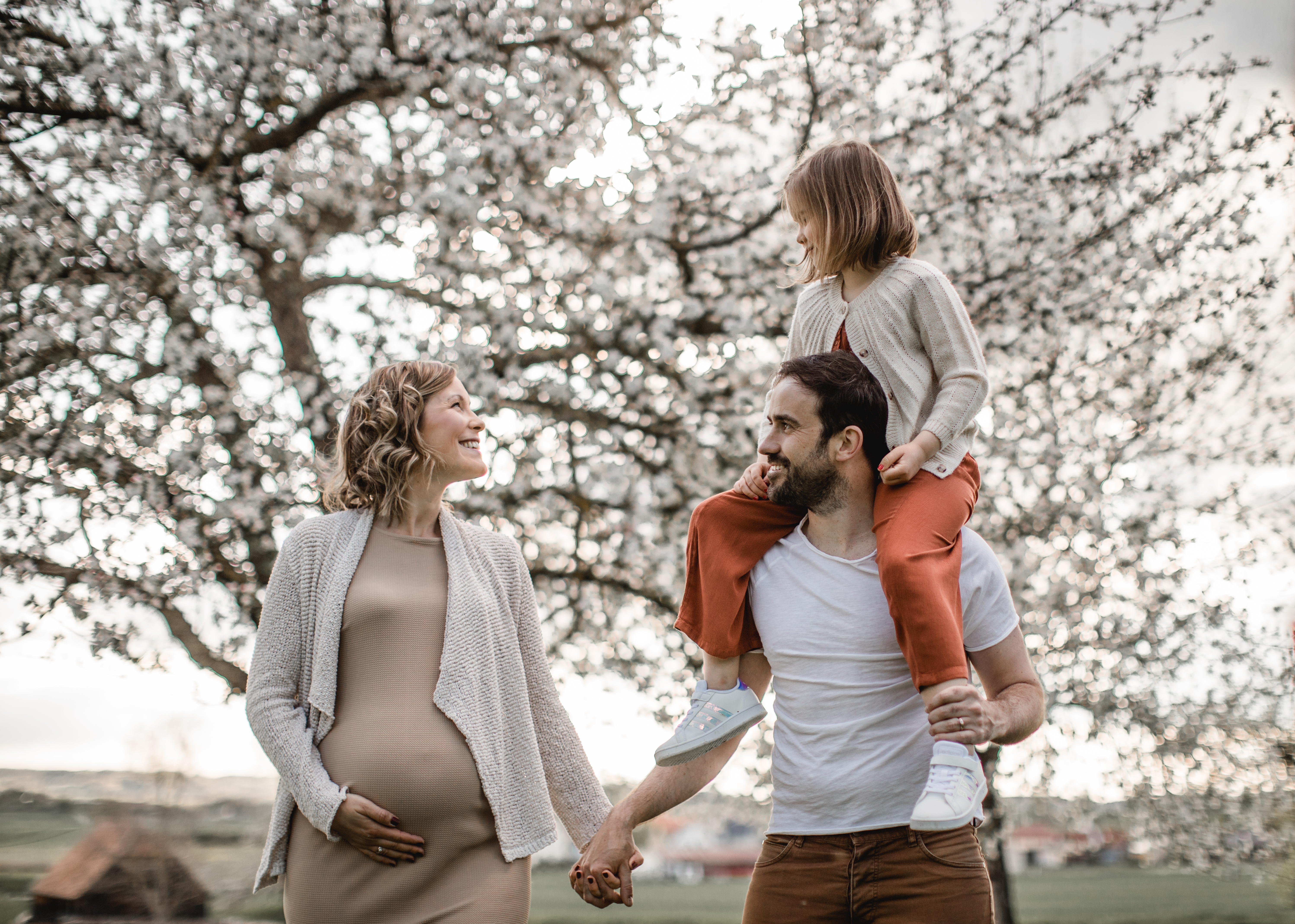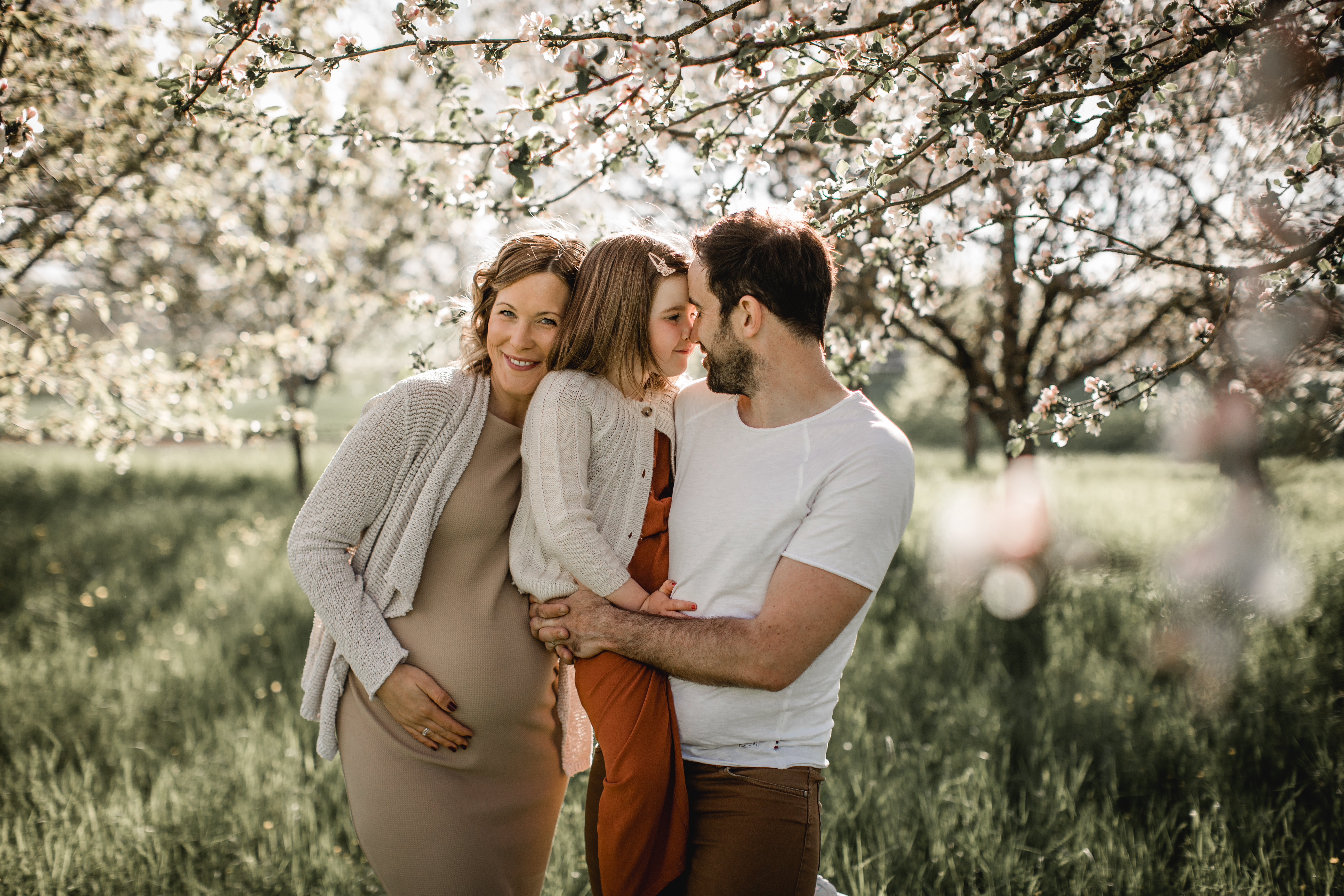 Gebucht haben die drei ein Aktionsshooting bei mir. Zwischen den blühenden Obstbäumen haben wir Andreas Schwangerschaft festgehalten und ein paar wunderschöne Fotos gemacht. Ich und, ich glaube auch Enna, wollten am Schluss gar nicht mehr aufhören zu shooten. Aber irgendwann mussten wir dann doch, da die kleine Maus als Belohnung noch das Let’s dance Finale schauen durfte. Das konnte ich natürlich total nachvollziehen 😉